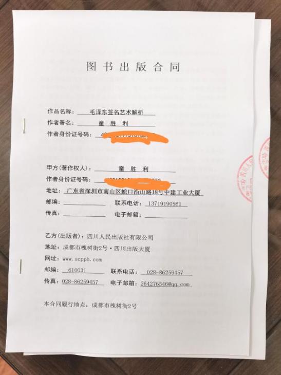 2023年10月份、《毛澤東簽名藝術解析》完稿交四川人民出版社